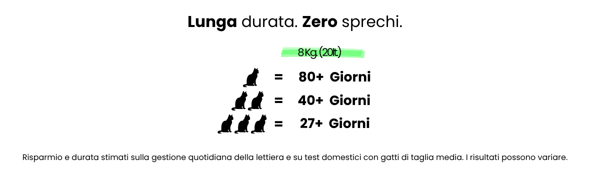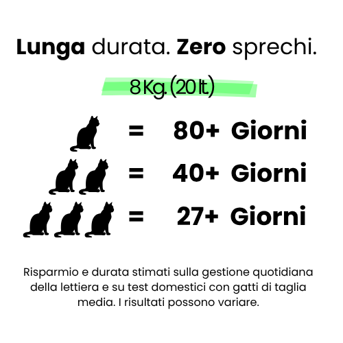 *Incidono sul cosnumo le variabili età, alimentazione, salute del gatto e corretto utilizzo (eliminando solo la "palla").